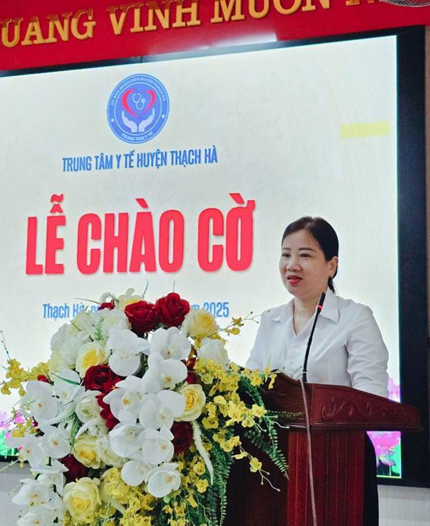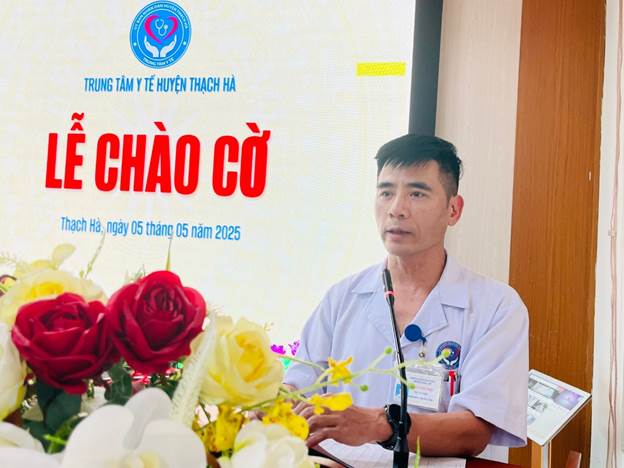 Phát biểu chỉ đạo tại buổi lễ, Bác sĩ Nguyễn Thế Phiệt – Bí thư Đảng ủy, Giám đốc Trung tâm Y tế huyện Thạch Hà đã ghi nhận và biểu dương tinh thần trách nhiệm, sự nỗ lực vượt khó của toàn thể cán bộ, viên chức trong việc thực hiện nhiệm vụ chuyên môn tháng 4/2025. Đồng chí nhấn mạnh: “Trong bối cảnh ngành Y tế đang đứng trước nhiều yêu cầu đổi mới, Trung tâm cần tiếp tục phát huy tinh thần đoàn kết, tận tâm phục vụ nhân dân, hướng đến sự hài lòng của người bệnh, nâng cao chất lượng khám chữa bệnh, phòng chống dịch và các nhiệm vụ y tế dự phòng”.