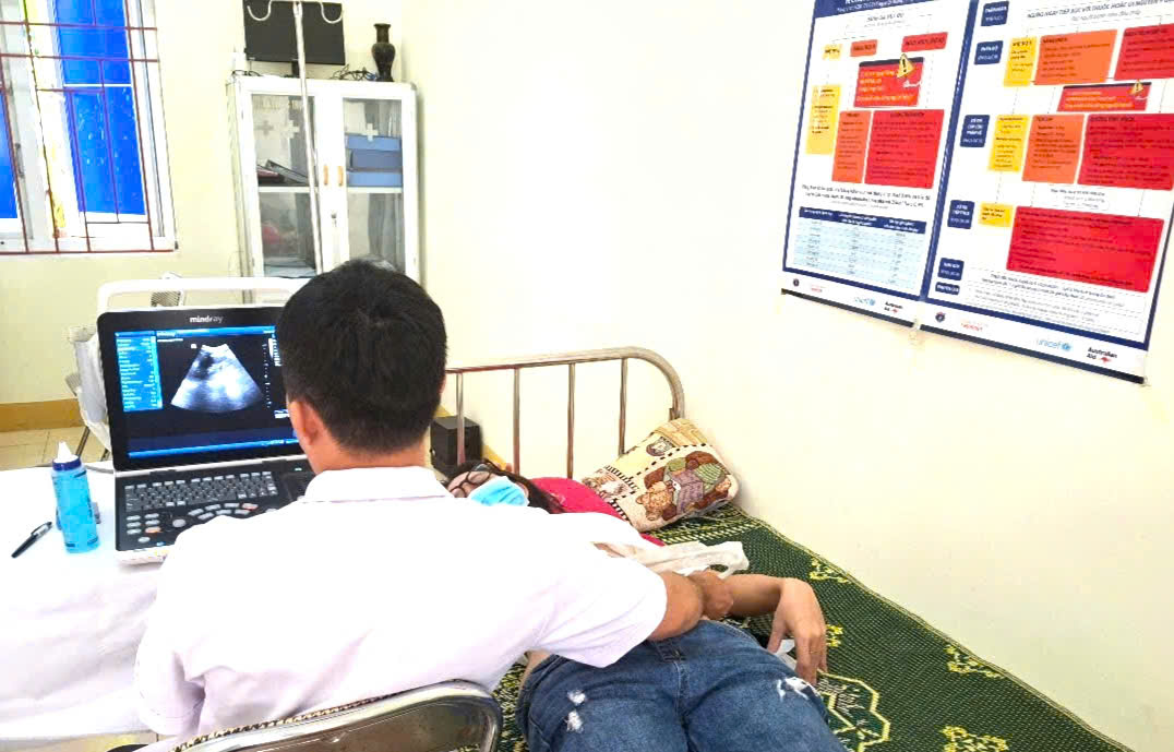 Bác sĩ thực hiện siêu âm kiểm tra sức khỏe tổng quát cho người dân tại Trạm Y tế trong khuôn khổ chiến dịch năm 2025.