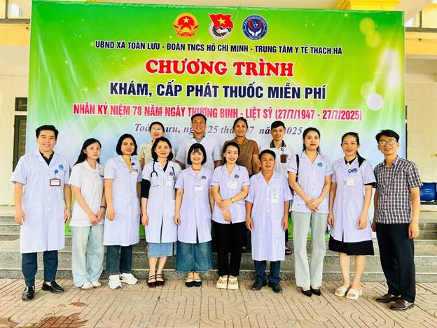 Nhân kỷ niệm 78 năm Ngày Thương binh - Liệt sĩ (27/7/1947 – 27/7/2025), chiều ngày 25/7/2025, Trung tâm Y tế Thạch Hà phối hợp với UBND xã Toàn Lưu tổ chức chương trình khám bệnh, tư vấn sức khỏe và cấp phát thuốc miễn phí cho các đối tượng chính sách là thương binh, bệnh binh, thân nhân liệt sĩ đang sinh sống tại xã Toàn Lưu, tỉnh Hà Tĩnh. Tham dự chương trình có các đồng chí lãnh đạo Đảng ủy, HĐND, UBND xã Toàn Lưu; cán bộ, y bác sĩ Trung tâm Y tế Thạch Hà; Trạm Y tế Lưu Vĩnh Sơn, xã Toàn Lưu cùng đông đảo người dân địa phương. Đặc biệt, hơn 100 người có công với cách mạng đã đến tham gia thăm khám và nhận thuốc miễn phí từ đoàn công tác. Trong suốt thời gian triển khai, đội ngũ y bác sĩ đã tiến hành đo huyết áp, kiểm tra các dấu hiệu sinh tồn, khám nội khoa, siêu âm tổng quát nhằm phát hiện và tư vấn sớm các bệnh lý tiềm ẩn, đồng thời cấp phát thuốc điều trị phù hợp với tình trạng sức khỏe từng người. Không chỉ mang đến giá trị về mặt y tế, chương trình còn là dịp để ngành y tế huyện nhà thể hiện lòng biết ơn và trách nhiệm chăm sóc sức khỏe đối với những người có công. Cán bộ y tế cấp phát thuốc miễn phí, hướng dẫn sử dụng thuốc cho các bác thương bệnh binh và thân nhân liệt sĩ. Chia sẻ tại chương trình, Bác sĩ Trần Viết Thông – Bí thư Đoàn Thanh niên Trung tâm Y tế Thạch Hà nhấn mạnh: “Việc tổ chức các hoạt động khám, cấp thuốc miễn phí cho người có công là một trong những hoạt động mang ý nghĩa nhân văn sâu sắc mà Trung tâm luôn quan tâm thực hiện hằng năm. Đây không chỉ là trách nhiệm nghề nghiệp mà còn là tình cảm chân thành của những người làm nghề y đối với thế hệ cha anh đi trước.” Bên cạnh việc tổ chức khám chữa bệnh, các y bác sĩ đã ân cần thăm hỏi, trò chuyện với từng người dân, lắng nghe những chia sẻ về cuộc sống, bệnh tật và những mong muốn trong chăm sóc sức khỏe. Không khí buổi khám bệnh diễn ra đầm ấm, nghĩa tình, để lại nhiều ấn tượng tốt đẹp trong lòng người dân xã Toàn Lưu. Chương trình khép lại bằng những cái bắt tay thân tình, những lời cảm ơn xúc động và những nụ cười nhẹ nhõm sau khi được chăm sóc sức khỏe. Hơn cả một hoạt động chuyên môn, đây là dịp để gắn kết tình cảm giữa cán bộ ngành y tế với nhân dân, là nhịp cầu lan tỏa lòng biết ơn và những giá trị nhân ái trong cộng đồng. Đoàn công tác chụp ảnh lưu niệm cùng lãnh đạo địa phương tại chương trình. Trung tâm Y tế Thạch Hà xin được bày tỏ lòng tri ân sâu sắc đến các bác, các cô chú – những người đã lặng thầm góp phần làm nên hòa bình hôm nay. Xin kính chúc quý vị sức khỏe, an vui và mãi là tấm gương sáng cho thế hệ mai sau noi theo.