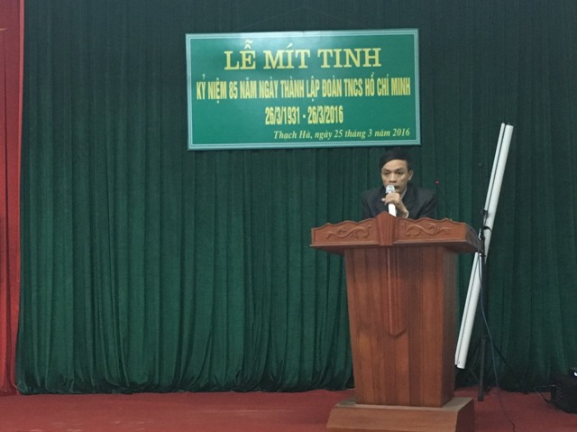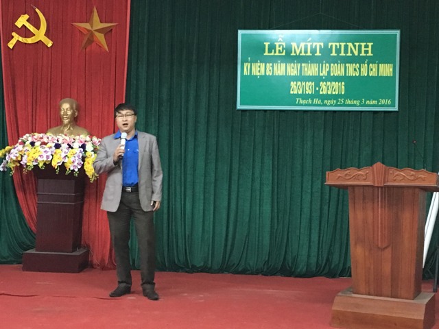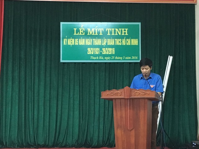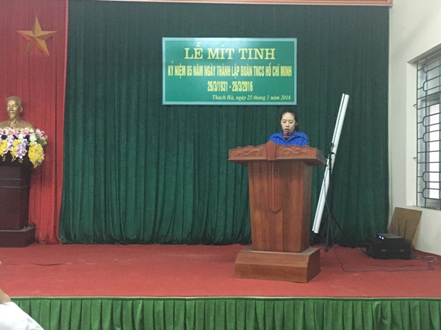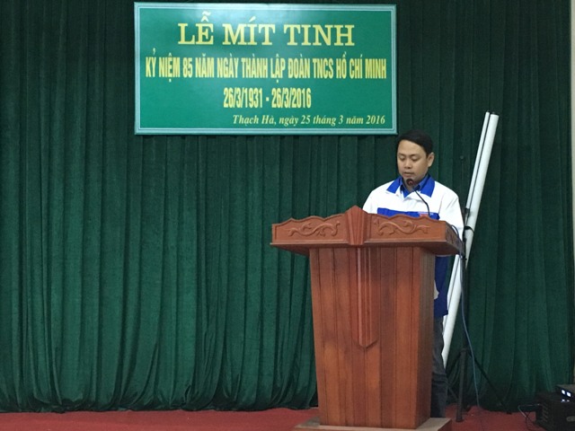 Được sự đồng ý của Đảng ủy, Ban giám đốc bệnh viện; Ban chấp hành Đoàn Bệnh viện Thạch Hà tổ chức Lễ mít tinh kỷ niệm 85 năm ngày thành lập Đoàn TNCS Hồ Chí Minh (26/3/1931 – 26/3/2016) vào chiều ngày 25/3/2016.