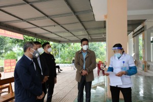 Quyền Giám đốc Sở Y tế Nguyễn Tuấn cùng Đoàn công tác trao đổi, đánh giá kết quả tiêm phòng vắc-xin tại xã Sơn Tây, huyện Hương Sơn.