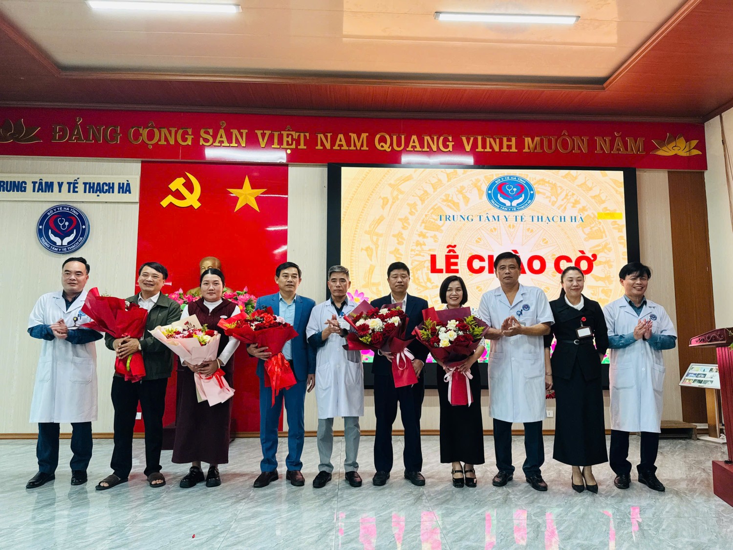 (Lãnh đạo Trung tâm Y tế Thạch Hà tặng hoa chúc mừng tập thể khoa/ phòng hoàn thành xuất sắc nhiệm vụ năm 2025)