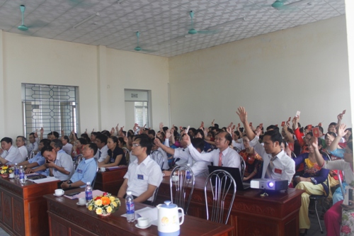 Đại hội biểu quyết thông qua Nghị quyết của Đại hội. (Ảnh: Đức Anh)