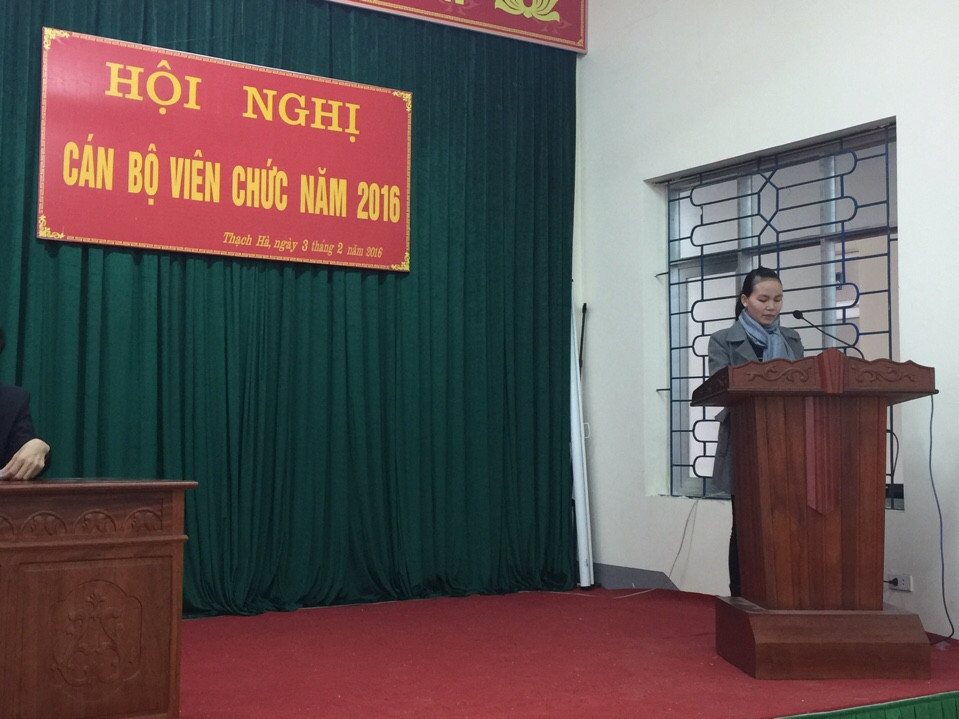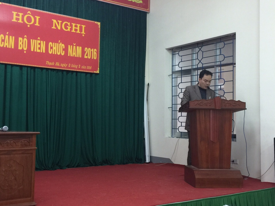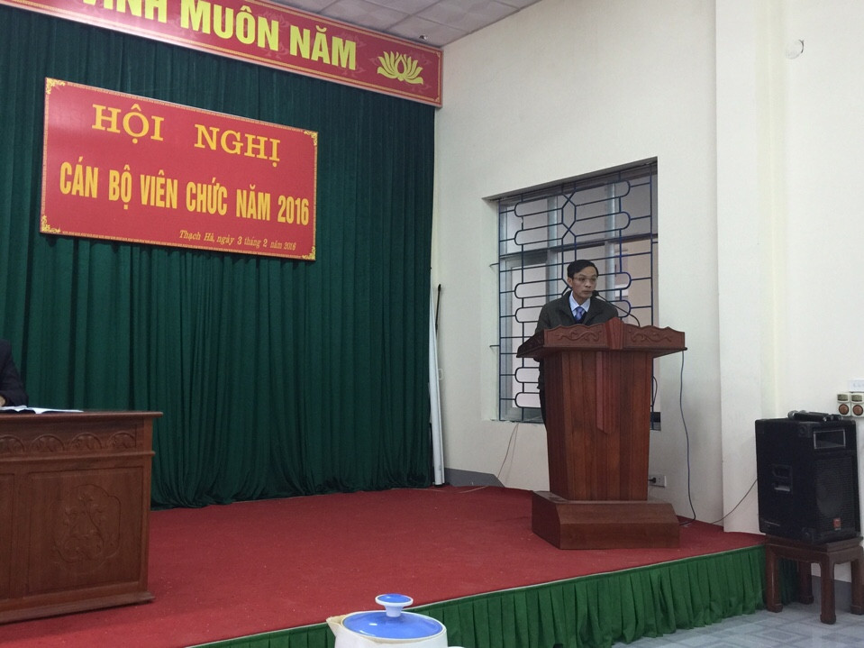 Tại Hội nghị, cán bộ viên chức đã nghe đồng chí Phan Công Tý – Trưởng phòng Kế hoạch – Tài vụ đọc bản Báo cáo hoạt động thực hiện nhiệm vụ năm 2015, phương hướng nhiệm vụ 2016, nội dung nêu rõ: năm 2015, tập thể cán bộ Bệnh viện Đa khoa huyện đã đoàn kết thống nhất, hoàn thành xuất sắc nhiệm vụ chính trị, chỉ tiêu kế hoạch nhà nước giao. Công tác lãnh đạo, chỉ đạo và công tác chính trị tư tưởng được quan tâm đẩy mạnh, nhất là tinh thần, thái độ phục vụ người bệnh, xây dựng môi trường đoàn kết tôn trọng lẫn nhau trong cán bộ lãnh đạo, cán bộ viên chức bệnh viện. Không ngừng nâng cao chất lượng chuyên môn và tinh thần thái độ phục vụ, tạo uy tín cho bệnh viện phấn đấu thực hiện hoàn thành tốt các chỉ tiêu kế hoạch đề ra trong năm 2015. Về các công tác đào tạo; công tác nghiên cứu khoa học; công tác chỉ đạo tuyến và thực hiện đề án 1816; công tác dược và trang thiết bị; công tác tài chính y tế; công tác cải tiến chất lượng bệnh viện và các công tác khác luôn được Ban giám đốc đề cao, ủng hộ và thực hiện nghiêm túc.