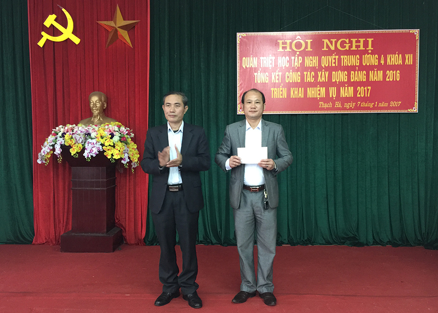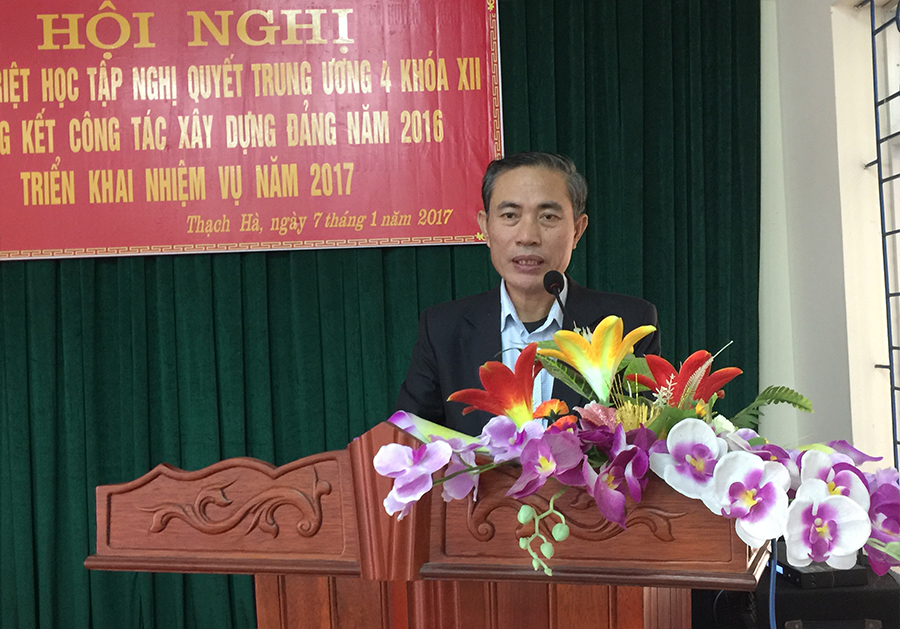 Hội nghị đã nghe Đồng chí Lê Văn Bình, Bí thư Đảng ủy trình bày báo cáo tổng kết công tác xây dựng Đảng năm 2016; triển khai nhiệm vụ năm 2017. Theo đó, năm 2016, Đảng bộ Bệnh viện đa khoa huyện Thạch Hà tiếp tục đạt được nhiều thành tựu quan trọng, toàn diện trên tất cả các lĩnh vực: cơ cấu tổ chức được sắp xếp hợp lý; công tác cán bộ đi vào nền nếp; hoạt động nghiên cứu khoa học, ứng dụng và chuyển giao kỹ thuật có hiệu quả; hoạt động hợp tác với bệnh viện các tuyến được tăng cường; cơ sở vật chất, tài chính phát triển lành mạnh, minh bạch; đời sống vật chất và tinh thần của cán bộ, đảng viên được nâng cao; an ninh, trật tự và an toàn trong Bệnh viện được đảm bảo. Công tác xây dựng Đảng được quan tâm đúng mức, nội bộ Bệnh viện đoàn kết thống nhất; cán bộ, đảng viên đồng thuận, triển khai đầy đủ và kịp thời các chủ trương, nghị quyết của cấp ủy cấp trên. Thực hiện tốt công tác phát triển đảng viên (năm 2016 đã kết nạp được 5 đảng viên). Đảng ủy, Ban Thường vụ Đảng ủy Bệnh viện luôn quan tâm lãnh đạo và tạo điều kiện cho các đoàn thể quần chúng hoạt động có hiệu quả. Chỉ đạo tổng kết thực hiện Chỉ thị số 03-CT/TW và triển khai thực hiện Chỉ thị số 05-CT/TW ngày 15/5/2016 của Bộ Chính trị về đẩy mạnh học tập và làm theo tư tưởng, đạo đức, phong cách Hồ Chí Minh gắn với việc thực hiện Nghị quyết Trung ương 4 (khóa XI) "Một số vấn đề cấp bách về xây dựng Đảng hiện nay", Nghị quyết số 04-NQ/TW ngày 30/10/2016 của Ban Chấp hành Trung ương Đảng (khóa XII) về tăng cường xây dựng, chỉnh đốn Đảng; ngăn chặn, đẩy lùi sự suy thoái về tư tưởng chính trị, đạo đức, lối sống, những biểu hiện "tự diễn biến", "tự chuyển hóa" trong nội bộ.