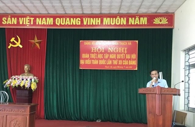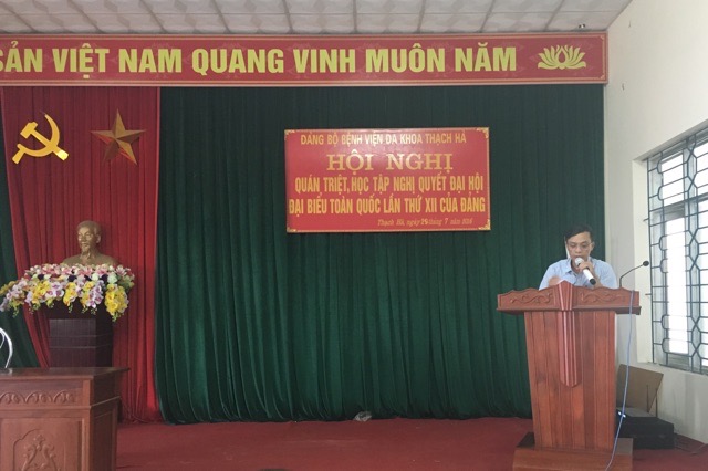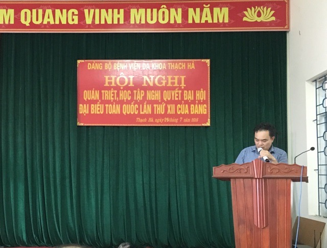 Mở đầu, BS Lê Văn Bình - Giám đốc bệnh viện, Bí thư đảng bộ đã báo cáo tóm tắt những điểm mới của báo cáo chính trị của đại hội đảng toàn quốc năm 2016. Có nhiều điểm mới: Về Chủ đề Đại hội XII (cũng là tiêu đề Báo cáo chính trị) được xác định là: Tăng cường xây dựng Đảng trong sạch, vững mạnh; phát huy sức mạnh toàn dân tộc, dân chủ xã hội chủ nghĩa; đẩy mạnh toàn diện, đồng bộ công cuộc đổi mới; bảo vệ vững chắc Tổ quốc, giữ vững môi trường hòa bình, ổn định; phấn đấu sớm đưa nước ta cơ bản trở thành nước công nghiệp theo hướng hiện đại. Trong các thành tố chủ đề Đại hội XII đều có những điểm mới, nhất là thành tố thứ tư “bảo vệ vững chắc Tổ quốc, giữ vững môi trường hòa bình, ổn định” lần đầu tiên được đưa vào chủ đề Đại hội; Về công tác nhân sự; Về Chủ trương tiếp tục đổi mới mô hình tăng trưởng, cơ cấu lại nền kinh tế; đẩy mạnh công nghiệp hóa, hiện đại hóa gắn với phát triển kinh tế tri thức; hoàn thiện thể chế, phát triển kinh tế thị trường định hướng xã hội chủ nghĩa; Về Chủ trương xây dựng Đảng trong sạch, vững mạnh, nâng cao năng lực lãnh đạo và sức chiến đấu của Đảng; Về Chủ trương phát huy sức mạnh đại đoàn kết toàn dân tộc, dân chủ xã hội chủ nghĩa; xây dựng và hoàn thiện Nhà nước pháp quyền xã hội chủ nghĩa,...