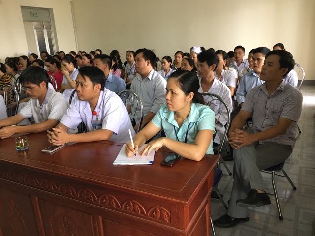 Tiếp theo chương trình, BS Nguyễn Lương Phụ - Phó giám đốc bệnh viện trình bày kế hoạch của huyện đảng bộ về tổng kết 5 năm thực hiện chỉ thị 03 của bộ chính trị về học tập và làm theo tấm gương đạo đức của Hồ Chí Minh. Theo đó, các đảng viên học tập và làm theo Bác với tiêu chí: Sát chức năng, ngắn gọn, dễ hiểu, dễ làm.