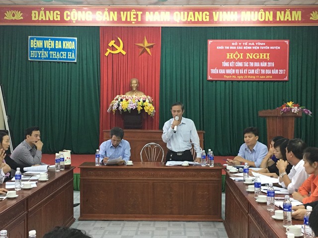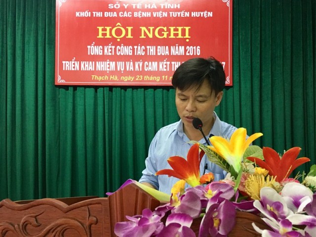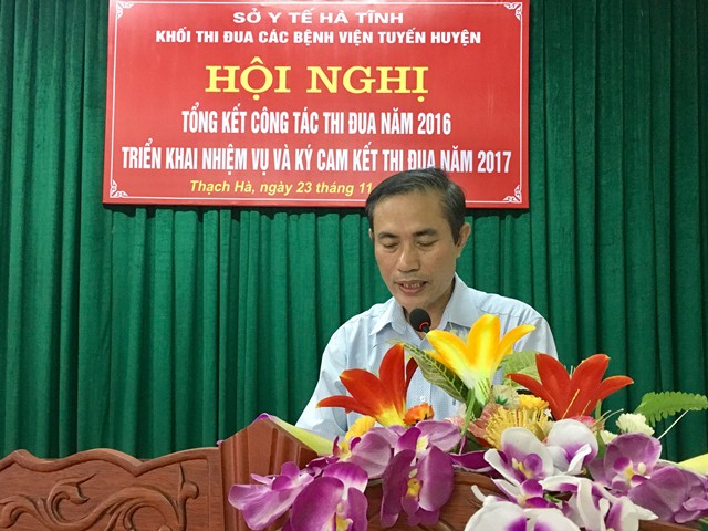 Thay mặt đơn vị Trưởng khối đồng chí Lê Văn Bình, Giám đốc Bệnh viện Đa khoa huyện Thạch Hà trân trọng tiếp thu ý kiến chỉ đạo của đại diện Sở Y tế và ý kiến phát biểu của các đơn vị thành viên để tham mưu xây dựng kế hoạch triển khai thực hiện phương hướng nhiệm vụ theo sự thống nhất chung. Đồng thời cũng đề nghị các đơn vị trong khối cụ thể hóa các phong trào thi đua yêu nước gắn với thực hiện nhiệm vụ chuyên môn hoàn thành vượt mức các chỉ tiêu kế hoạch đã đề ra trong công tác khám, chữa bệnh, chăm sóc và bảo vệ sức khỏe nhân dân của đơn vị mình. Bên cạnh đó tiếp tục đẩy mạnh công tác tuyên truyền, quán triệt các chủ trương, chính sách pháp luật của Đảng và Nhà nước; gắn các phong trào thi đua của Bệnh viện với phong trào thi đua của tỉnh, của các huyện; thực hiện đổi mới các nội dung, hình thức thi đua khen thưởng; tham gia hưởng ứng các hoạt động xã hội từ thiện; tiến hành tổng kết, khen thưởng cho các tập thể và cá nhân tiêu biểu xuất sắc, điển hình tiên tiến, gương người tốt việc tốt,..Qua đó góp phần không ngừng cải thiện, nâng cao chất lượng dịch vụ y tế, nâng cao chất lượng bệnh viện hướng tới sự hài lòng của người bệnh.