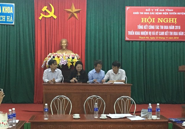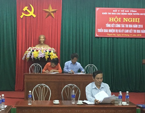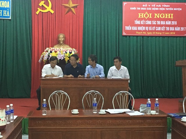 Để tiếp tục đẩy mạnh các phong trào thi đua, phát huy những thành tích đã đạt được trong năm 2016, nhằm động viên, khích lệ và tôn vinh các cá nhân, tập thể hăng hái thi đua lao động sáng tạo, hoàn thành tốt nhiệm vụ, lập thành tích xuất sắc góp phần thực hiện thắng lợi các mục tiêu phát triển của ngành Y tế, sự nghiệp bảo vệ, chăm sóc và nâng cao sức khỏe nhân dân. Khối thi đua các bệnh viện tuyến huyện đã ký giao ước thi đua với nhau.
