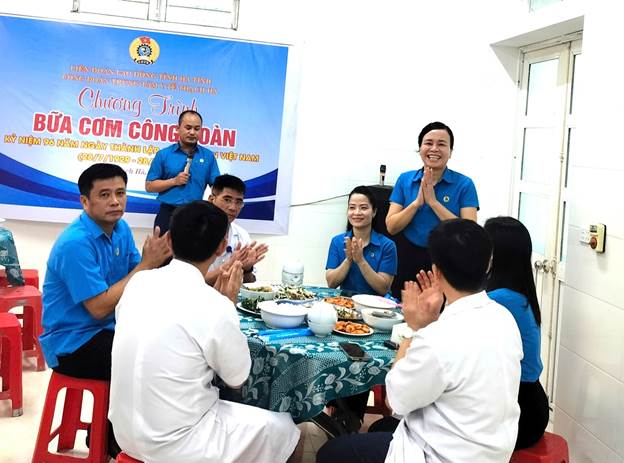 Nhân kỷ niệm 96 năm ngày thành lập Công đoàn Việt Nam (28/7/1929 – 28/7/2025), trưa ngày 25/7/2025, Công đoàn Trung tâm Y tế Thạch Hà đã tổ chức bữa cơm công đoàn ấm áp dành cho đội ngũ cán bộ, viên chức, người lao động đang trực tiếp thực hiện nhiệm vụ trong ngày. Đây không chỉ là hoạt động ý nghĩa mang tính truyền thống mà còn thể hiện sự quan tâm, sẻ chia sâu sắc từ tổ chức công đoàn với những đóng góp thầm lặng của từng đoàn viên trong môi trường làm việc đặc thù ngành y. Tham dự chương trình, về phía Liên đoàn Lao động tỉnh Hà Tĩnh có các đồng chí: Tăng Thị Linh Chi – Phó Chủ tịch Liên đoàn Lao động tỉnh Lê Thị Bình – Phó Trưởng ban Công tác Công đoàn, LĐLĐ tỉnh Lê Nữ Ái Chi – Phó Ban Công đoàn Khu kinh tế, LĐLĐ tỉnh Về phía Trung tâm Y tế Thạch Hà có sự tham dự của các đồng chí trong Ban Thường vụ Đảng ủy, Ban Giám đốc, Ban Chấp hành Công đoàn cơ sở cùng đông đảo viên chức, người lao động kíp trực ngày 25/7/2025. Các đồng chí đại biểu Liên đoàn Lao động tỉnh và lãnh đạo Trung tâm Y tế Thạch Hà tham dự bữa cơm công đoàn cùng đoàn viên, người lao động trong ngày trực 25/7/2025. Không gian của bữa cơm công đoàn diễn ra giản dị nhưng tràn đầy ấm cúng. Những món ăn quen thuộc, đậm hương vị quê hương do chính các đoàn viên công đoàn chuẩn bị đã mang lại cảm giác gần gũi, sẻ chia. Đây cũng là lúc mọi khoảng cách giữa các bộ phận, kíp trực, lãnh đạo và nhân viên được thu hẹp lại bằng tiếng cười, lời hỏi han, những cái bắt tay thân tình – khẳng định rõ vai trò của công đoàn như một mái nhà chung vững chãi. Phát biểu tại chương trình, đồng chí Tăng Thị Linh Chi – Phó Chủ tịch LĐLĐ tỉnh Hà Tĩnh ghi nhận và đánh giá cao tinh thần đoàn kết, sự linh hoạt, sáng tạo trong hoạt động công đoàn của Trung tâm Y tế Thạch Hà, nhất là việc tổ chức những hoạt động thiết thực, mang lại giá trị tinh thần sâu sắc cho đoàn viên, người lao động, đặc biệt trong điều kiện đặc thù của ngành y. Thay mặt đơn vị, đồng chí Nguyễn Thế Phiệt – Bí thư Đảng ủy, Giám đốc Trung tâm cũng gửi lời cảm ơn sâu sắc tới LĐLĐ tỉnh đã luôn quan tâm, đồng hành và động viên công đoàn Trung tâm trong suốt thời gian qua. Đồng chí mong rằng trong thời gian tới, các đoàn viên, người lao động Trung tâm sẽ tiếp tục phát huy tinh thần đoàn kết, trách nhiệm, xây dựng tổ chức công đoàn ngày càng vững mạnh, góp phần nâng cao chất lượng chăm sóc sức khỏe nhân dân. Bữa cơm công đoàn không chỉ đơn thuần là bữa ăn tập thể mà còn là nơi gắn kết, tiếp thêm động lực để mỗi đoàn viên thêm yêu ngành, yêu nghề, cùng nhau vượt qua khó khăn, giữ vững niềm tin và trách nhiệm trong công việc.