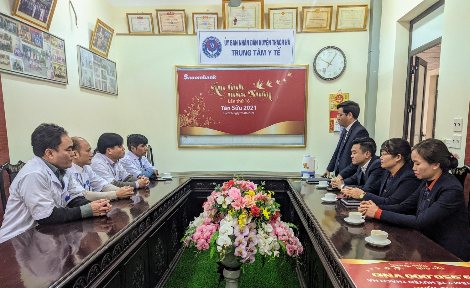 Sáng ngày 20/01/2021, Trung tâm Y tế huyện Thạch Hà đã trân trọng đón nhận món quà ý nghĩa trị giá 50 triệu đồng từ Ngân hàng TMCP Sài Gòn Thương Tín (Sacombank) – Chi nhánh Hà Tĩnh, nhằm hỗ trợ Trung tâm có thêm phương tiện, máy móc phục vụ người bệnh và thực hiện ngày càng tốt công tác chăm sóc sức khỏe nhân dân.