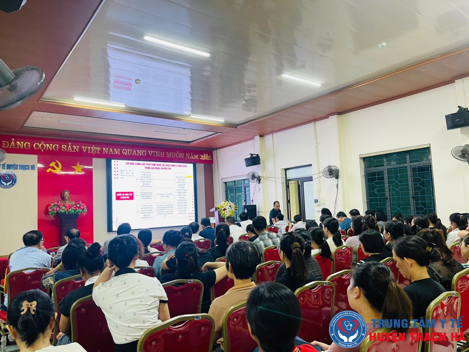 Sáng ngày 13/10/2024, Trung tâm Y tế huyện Thạch Hà tổ chức tập huấn Luật Khám bệnh, chữa bệnh năm 2023, Nghị định 96/2023/NĐ-CP và Thông tư 32/2023/TT-BYT quy định chi tiết một số điều của Luật Khám bệnh, chữa bệnh cho cán bộ nhân viên y tế.