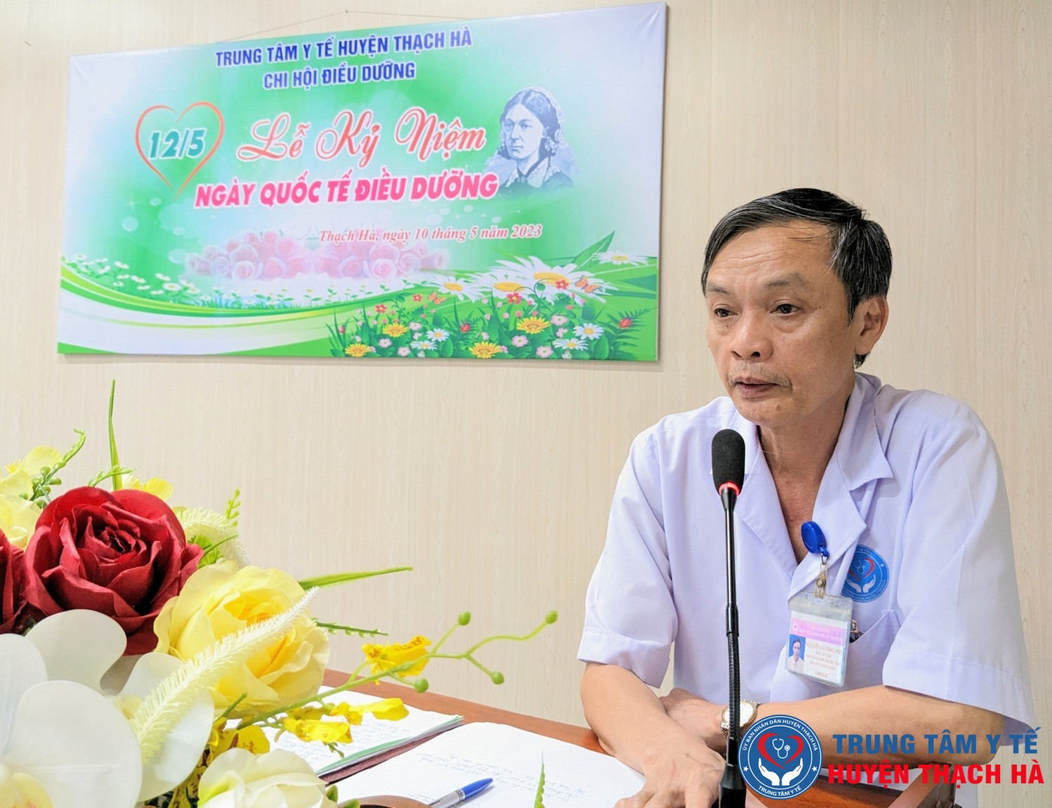 Phát biểu tại buổi lễ, Thầy thuốc ưu tú, ThS Nguyễn Việt Thắng Thắng - Phó Chủ tịch Hội điều dưỡng Việt Nam, Chủ tịch Hội Điều dưỡng Hà Tĩnh, Phó phòng Nghiệp vụ Y, Sở Y tế Hà Tĩnh đã thêm một lần nữa khẳng định vai trò quan trọng của công tác điều dưỡng trong sự nghiệp chăm sóc và bảo vệ sức khỏe nhân dân. Đồng thời chia sẻ về những đóng góp lớn lao mà âm thầm của đội ngũ điều dưỡng tại Trung tâm Y tế huyện Thạch Hà. Trong nhiều năm qua, đội ngũ điều dưỡng luôn chăm sóc bệnh nhân tận tâm, ân cần chu đáo, góp phần cùng Trung tâm ngày càng đáp ứng sự hài lòng của người bệnh, người dân. Đồng thời hy vọng rằng trong thời gian tới đội ngũ cán bộ điều dưỡng Trung tâm cố gắng phấn đấu, rèn luyện, nâng cao y đức để tô đẹp thêm hình ảnh người điều dưỡng, góp phần xứng đáng vào sự nghiệp chăm sóc sức khoẻ nhân dân.
