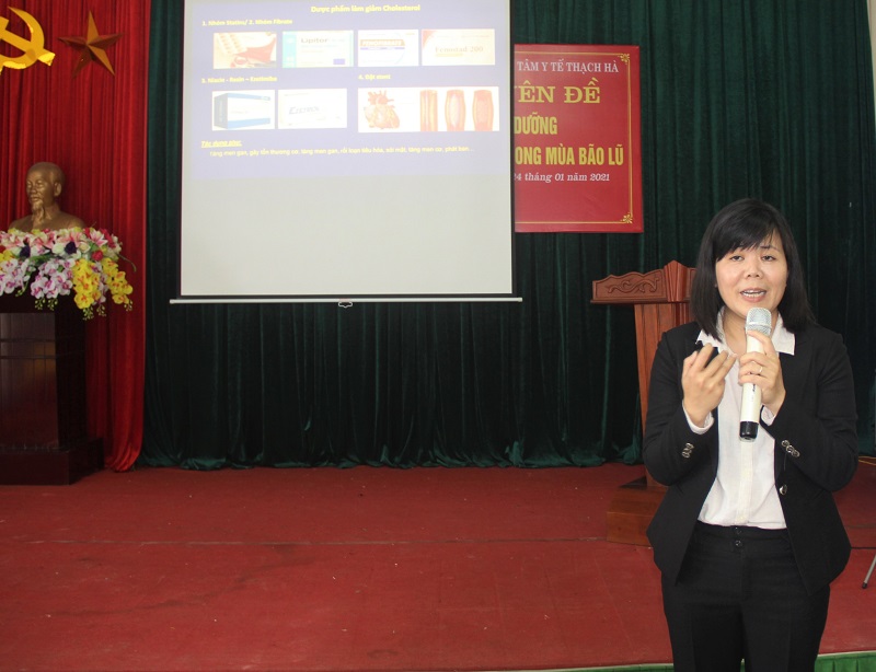 Tại đây, đại diện Trung tâm Y tế huyện đã trình bày bài học kinh nghiệm về dinh dưỡng và ATTP rút ra từ thực tiễn tham gia xử lý hậu quả trong đợt mưa lũ năm 2020 và những đề xuất dự phòng; Một số thành công, thất bại trong thực tế xử lý tình huống về dinh dưỡng và ATVSTP trong mùa mưa lũ năm 2020 ở xã Tân Lâm Hương và Thạch Hội.