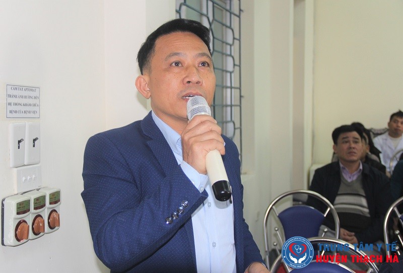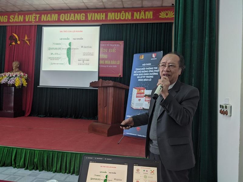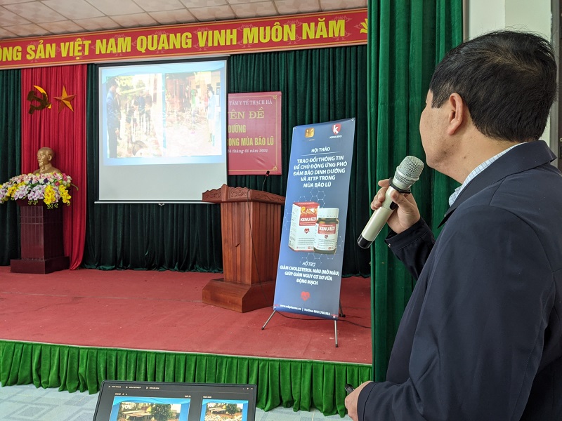 BS CKI. Lê Hữu Lưu - PGĐ TTYT huyện, báo cáo "Thực trạng về dinh dưỡng và an toàn thực phẩm trong lũ lụt, đề xuất và giải pháp".
