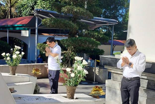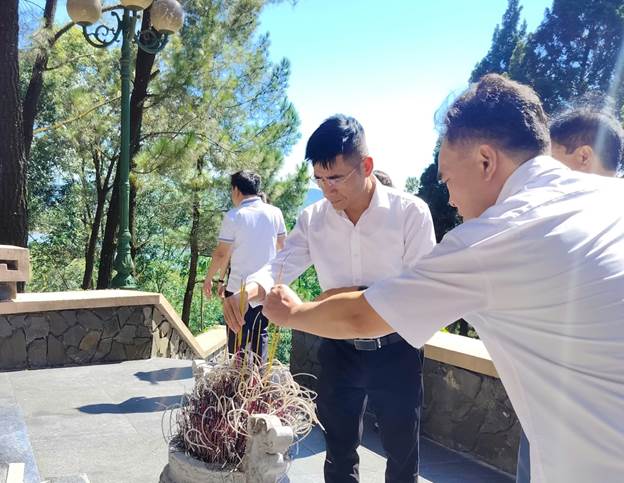 Đồng chí Nguyễn Thế Phiệt – Bí thư Đảng ủy, Giám đốc Trung tâm Y tế Thạch Hà, Trưởng đoàn – dâng lễ, dâng hương tưởng niệm tại Khu mộ Tổng Bí thư Trần Phú