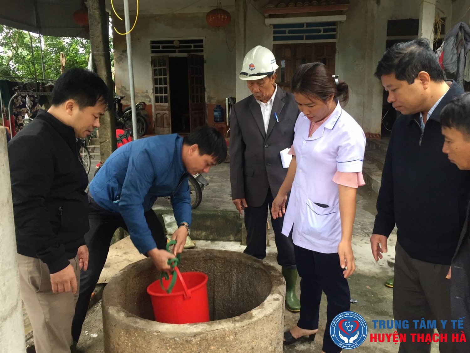 Cán bộ CDC Hà Tĩnh hướng dẫn người dân xử lý nước sinh hoạt